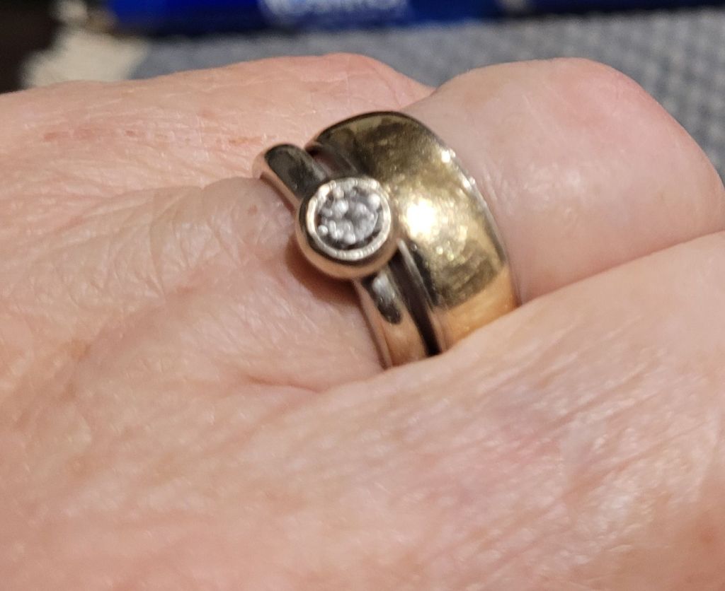 His wedding band (mine now), the diamond he picked out by himself for me